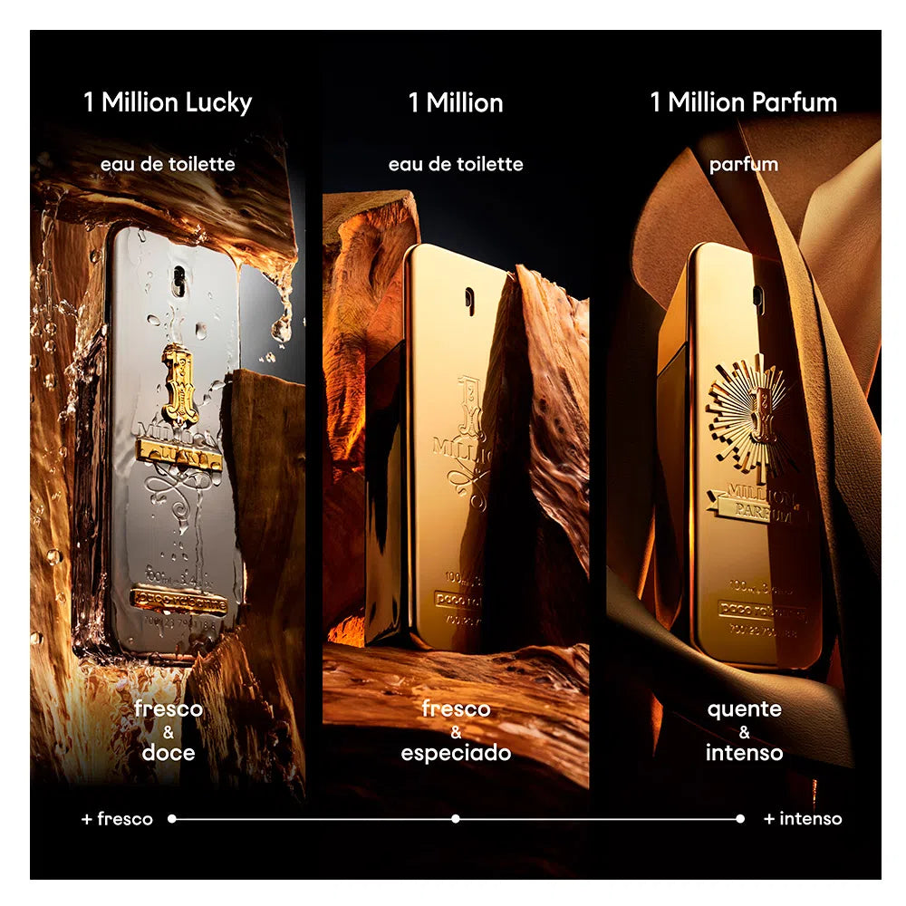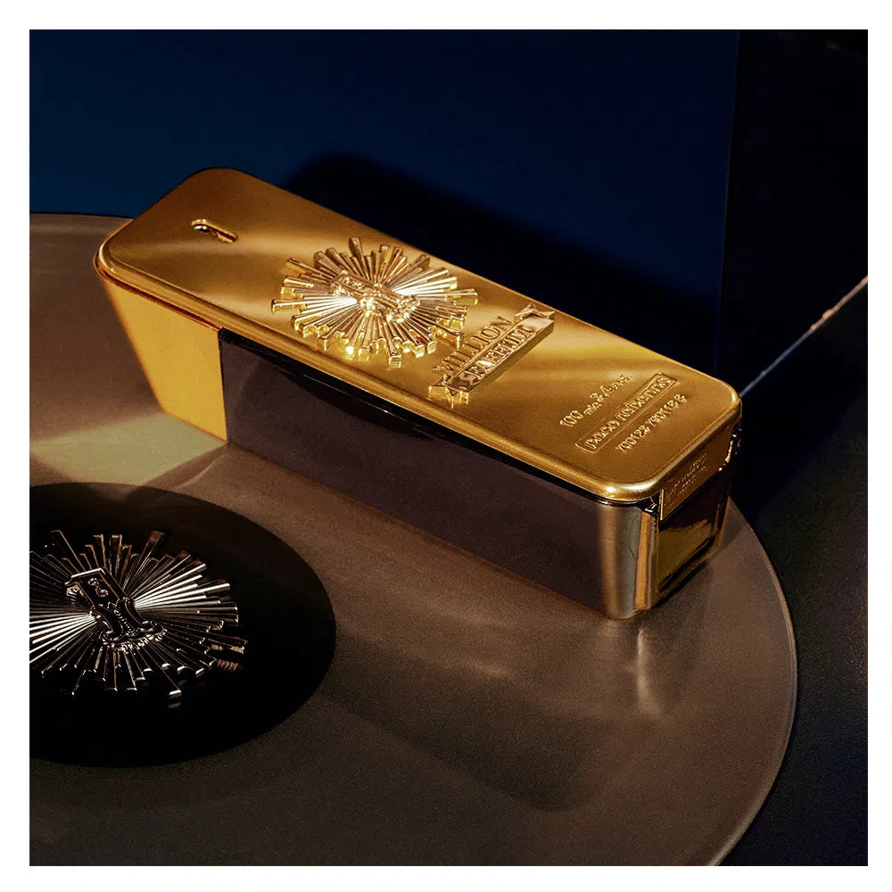 The fragrance of 1 Million Parfum is sublime and exaggerated as its fragrance. The iconic shape of a gold bar on the 1 Million line, which combines illuminated and brilliant gold with a beautiful glass. A new emblem tallado in metal for which you can save as it converts into 1 million between millions: the emblem of the owner, the ground!